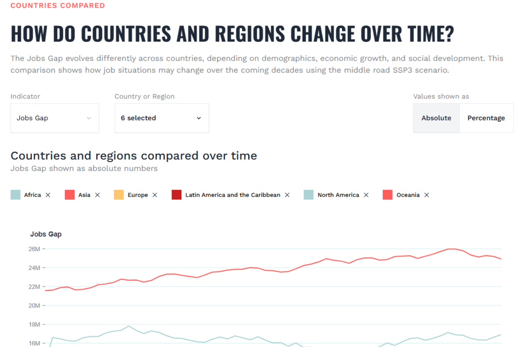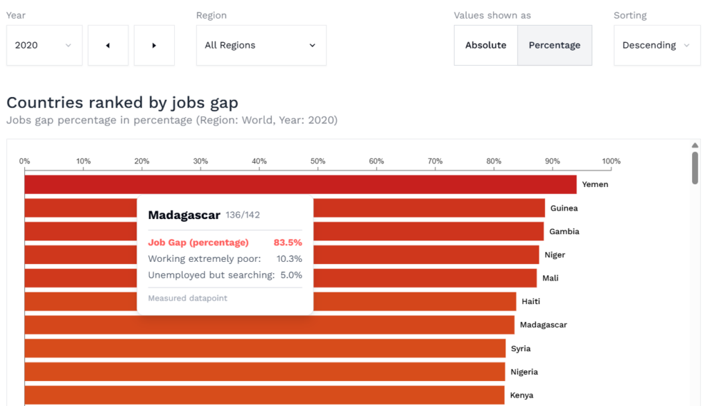 The platform combines cutting-edge data visualization with robust backend processing to deliver real-time insights into one of the world’s most critical economic indicators: the global jobs gap.